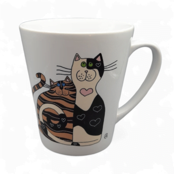Puodelis, skirtas kačių mylėtojams. Puiki dovana. Keturi linksmi katinėliai atpedens į jūsų širdis. Autorinis piešinys ant puodelio. Keramika. Galima plauti indaplovėje.