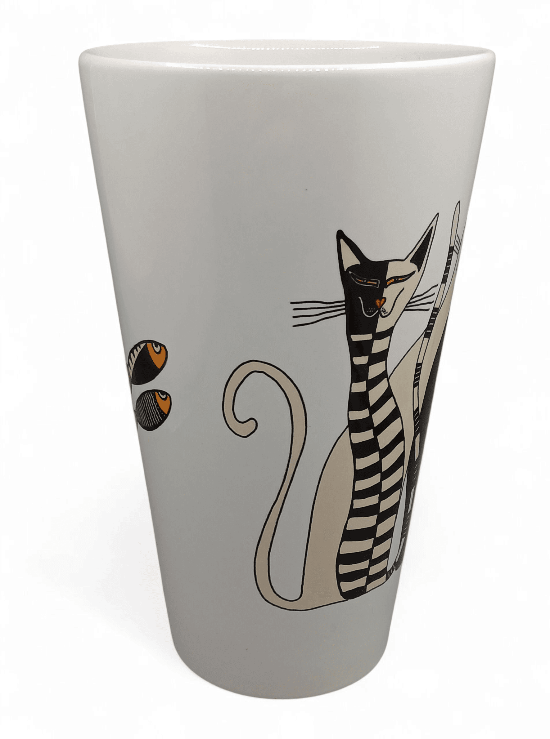 Puodelis kačių mylėtojams. Mėgstantiems klasiką – santūrios, juodai baltos katės. Puiki dovana. Autorinis piešinys ant puodelio. Keramika.