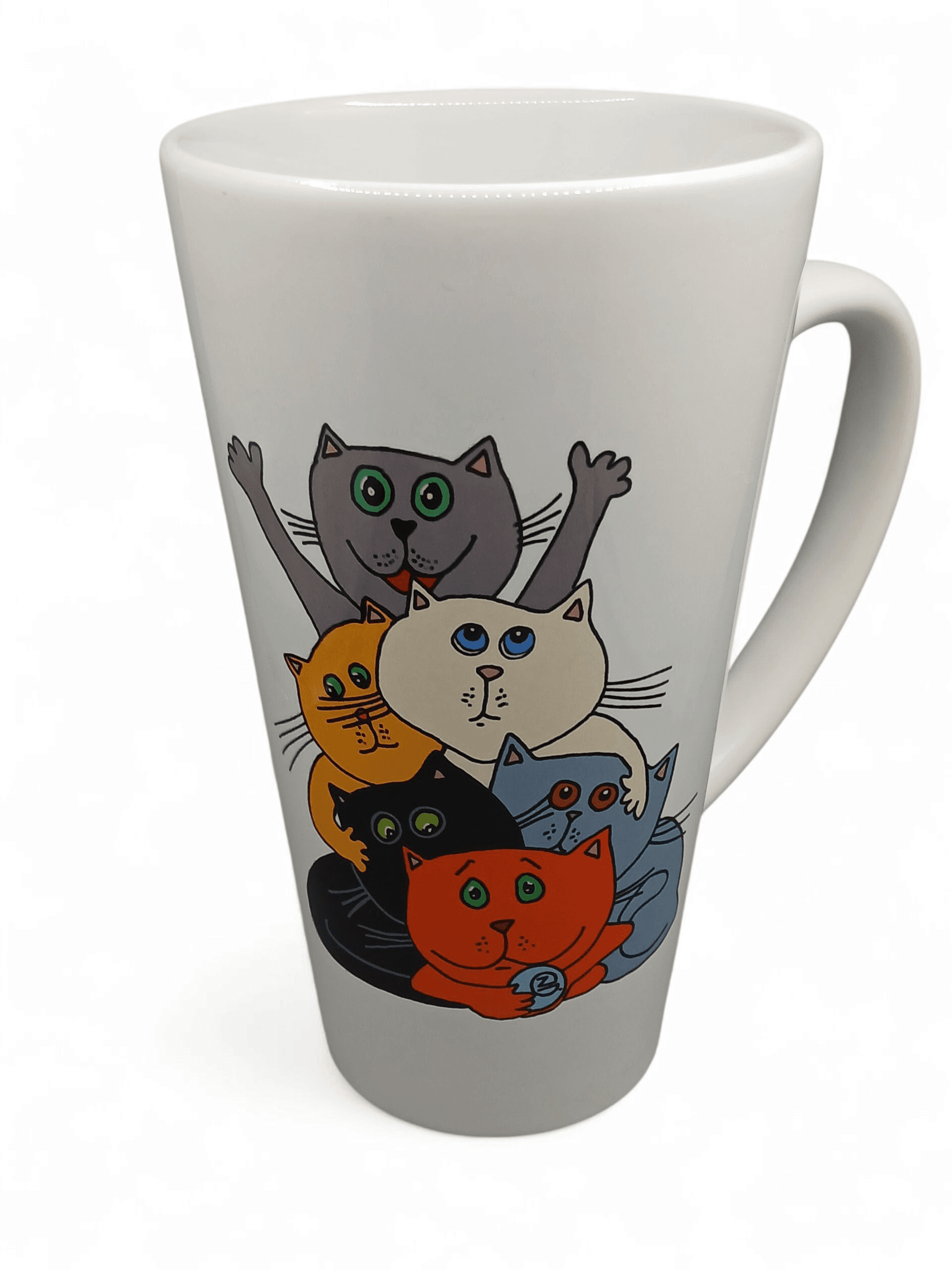 Puodelis kačių mylėtojams. Kačių bokštas, mėgstantiems pokštaut! Puiki dovana. Autorinis piešinys ant puodelio. Keramika.