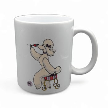 Puodelis šunų mylėtojams. Išdidus baltas karališkas pudelis pavergs jūsų širdis. Autorinis piešinys ant puodelio. Keramika. Galima plauti indaplovėje.