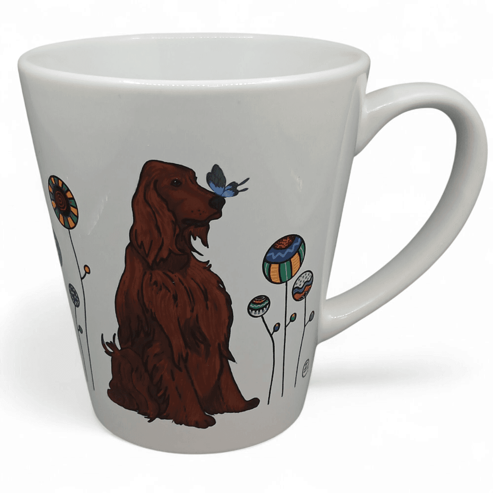 Puodelis šuniukų mylėtojams. Raudonplaukis išdykęs airių seteris, susižavėjęs drugeliu. Puiki dovana. Autorinis piešinys ant puodelio. Keramika. Galima plauti indaplovėje.